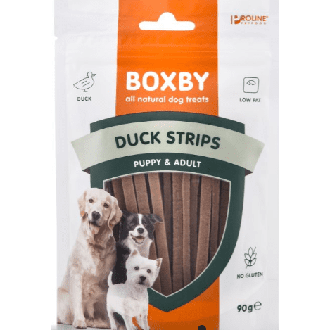Therefor the treat is high in protein and low in fat. The product has no gluten and is perfect for everyday use. The product is packed in a re-sealable bag of 90g. Composition Meat and animal derivatives (80% Duck), Derivatives of vegetable origin, Oils & fats, Vegetable protein extracts, Minerals. Analytical constituents: Moisture 30%, Crude protein 42%, Crude fat 2%, Crude ash 2.5%, Crude fiber 1%. No additives.