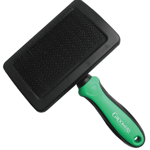 Slicker brushes are perfect for removing dirt and moulted hair from many coat types, and are really fabulous for double coated breeds. These brushes separate and remove undercoat hair quickly and easily. This large brush enables you to cover larger coat area in less, time, so it’s ideal for large and giant breeds with thick or long coats. Our new and improved handle features a soft, non-slip material to allow for a firm grip so you can use it with complete control and absolute comfort.