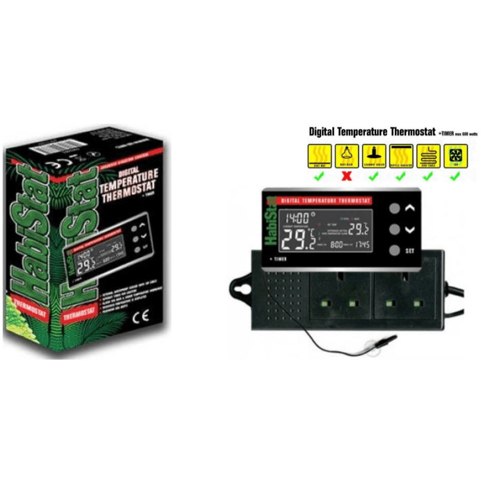 HabiStat Digital Temperature Thermostat features a continual readout of current temperature and time.