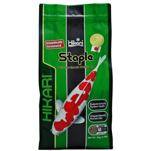 | Hikari® Staple™ is a lab formulated, daily diet, for feeding Koi and other pond fish in warmer water temperatures. The uniquely balanced ingredients support rapid growth, proper form and efficient utilization. This floating diet will not cloud your water and contains necessary vitamins, including stabilized vitamin C to support immune system health. Note: Hikari® Staple™ contains higher levels of natural ingredients which may cause a slight change in color from one production lot to another. Rest assured because of our rigid quality standards each package meets our superior nutritional specifications. |