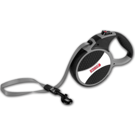 KONG Retrectable Leash, Exceptionally active explorers need extra freedom on their daily walks. This dog leash takes care of it. It features a 7.5 meter leash that allows all four-legged adventurers to roam, sniff and explore the world. , The intuitive braking and stopping mechanism is tuned to the natural movement and typical walking behavior of the dog. * Soft handle with support * Easy to brake + secure * KONG rubber thumb grip * Anti-twist system * Strong metal swivel hook Suitable for dogs up to 50 kg.