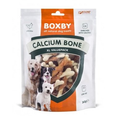 Boxby calcium bones are small bones made form chicken, enriched with calcium. The calcium bones are gluten free and low fat dog snacks. Composition Meat and animal derivatives (57% Chicken), derivatives of vegetable origin, oils & fats, minerals. Analytical constituents: Moisture 15%, Crude protein 34%, Crude oils and fats 2%, Crude ash 9%, Crude fiber 0.2% No additives